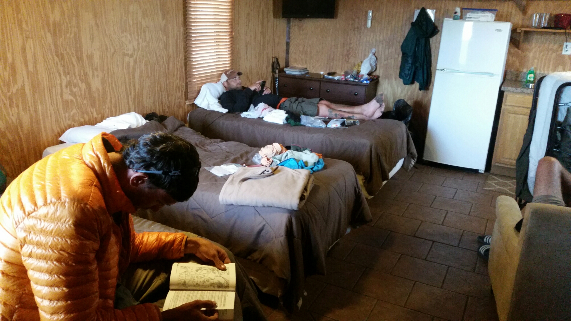 Two Crockpot full of chili, cheese, fritos, onions, and a lot of desserts. We had a feist. No one approached us during dinner but as we were leaving, Fred Sr waved at us to join their table to chat. I had met him a few hours prior and told him of my adventure. He and his family had a million questions and we were more than happy to answer them. They were so excited for us.