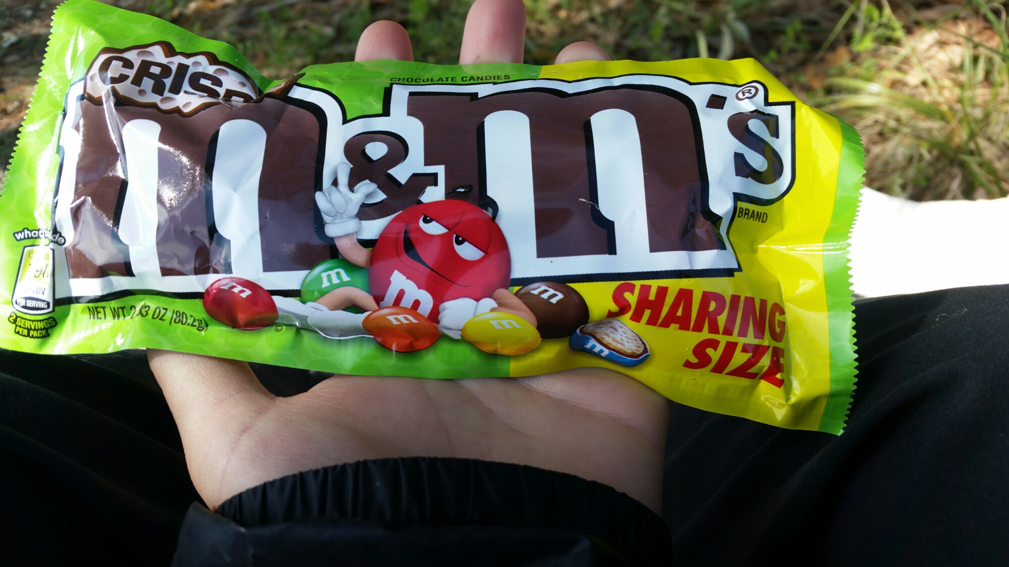 I bought a “sharing size” m&m’s pack. Who are they kidding? No one shares candy here. NOM NOM. NOM all mine!