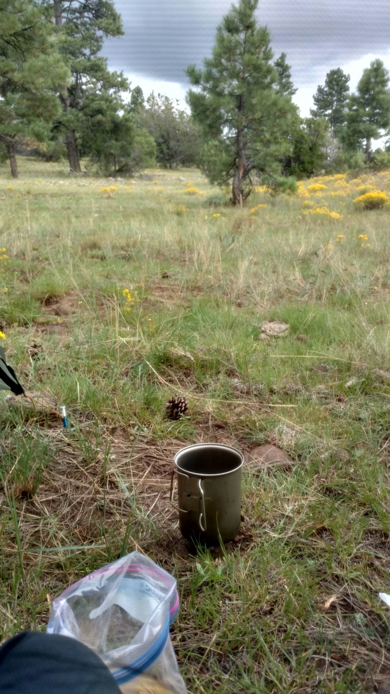 I woke up happy knowing the chupacabra did not get me overnight. Ended up doing 3 miles extra than I anticipated. It was a smooth hike most of the day so itself easy to do. Went up and down a canyon in my first 5 miles and it warmed me up nicely.